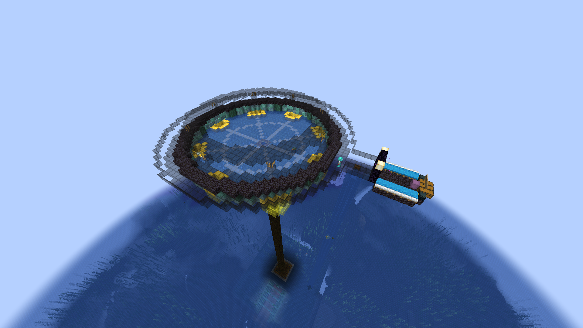 A fishing game using guardians. An elevator continuously draws guardians from an ocean monument as players compete to reel in as many as they can into their collection hole. The teams with the highest item drop from these guardians wins.