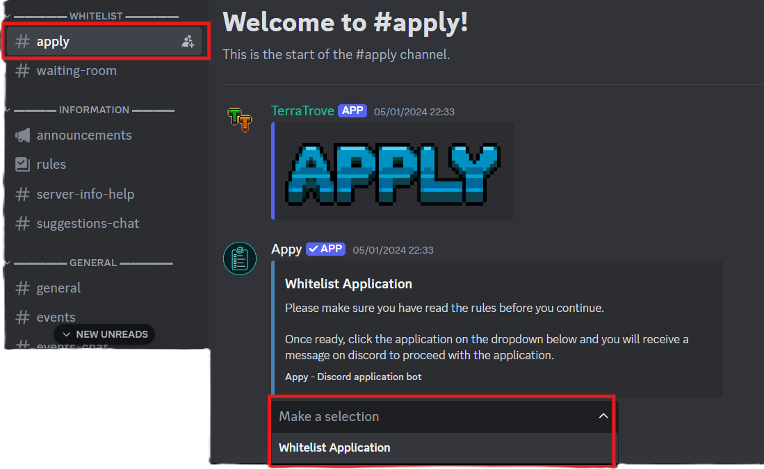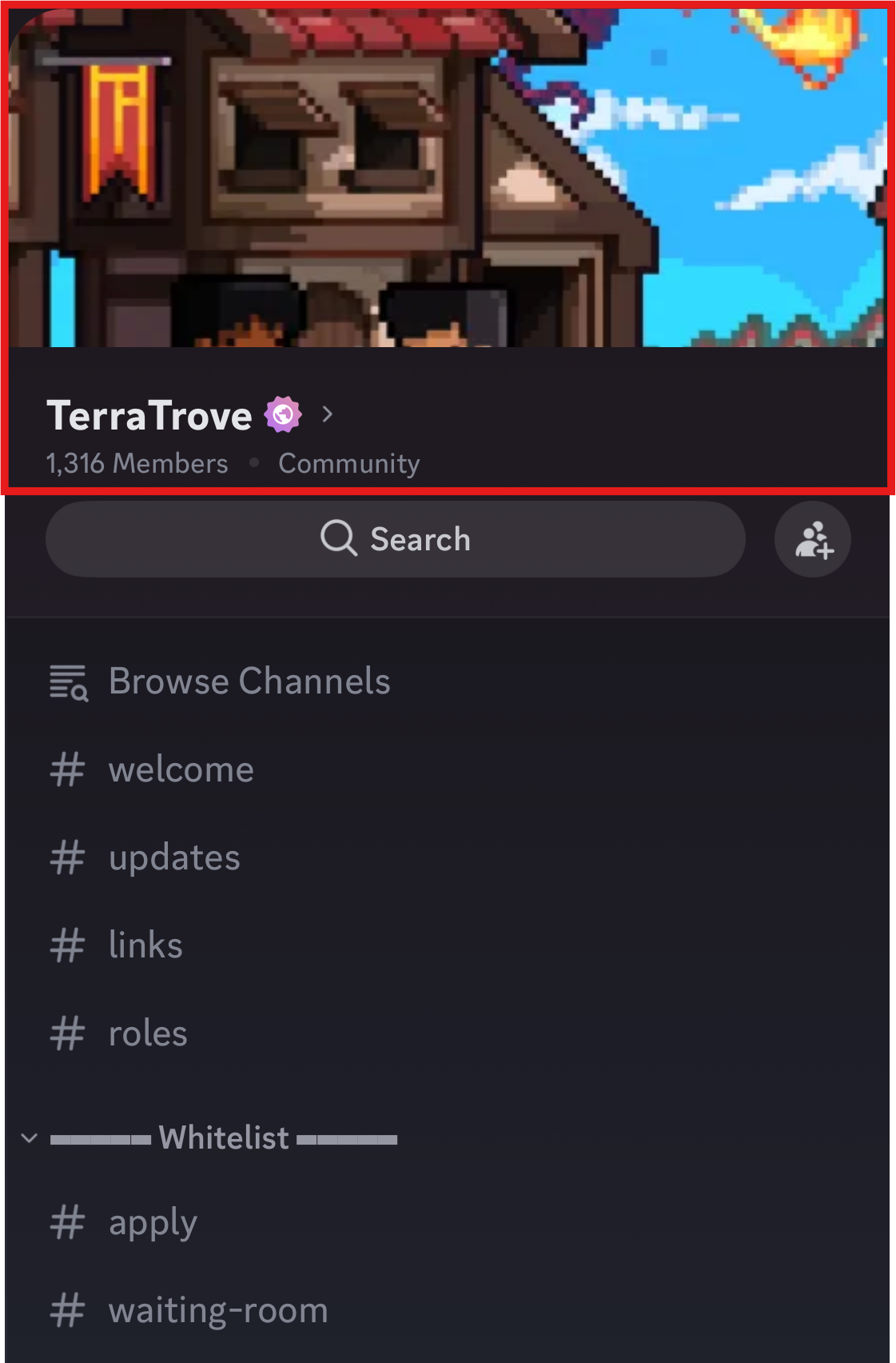 Joining TerraTrove requires whitelisting. Follow these steps to apply: