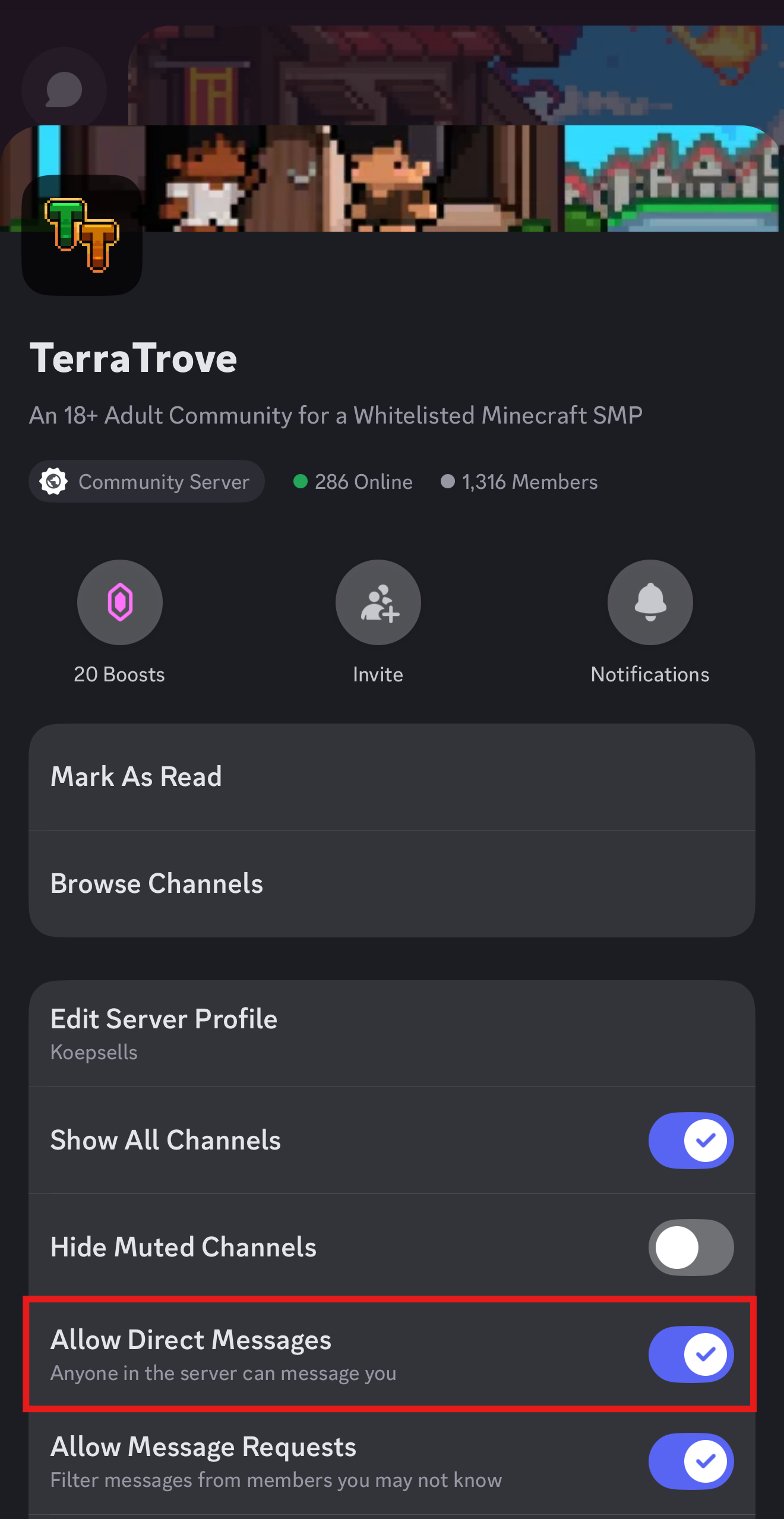 Congratulations! Now you just need to attempt logging into the server. You will receive a 4-digit code that you need to directly send to the @TerraTrove#2502 bot. Once done, you can join the server and start playing.