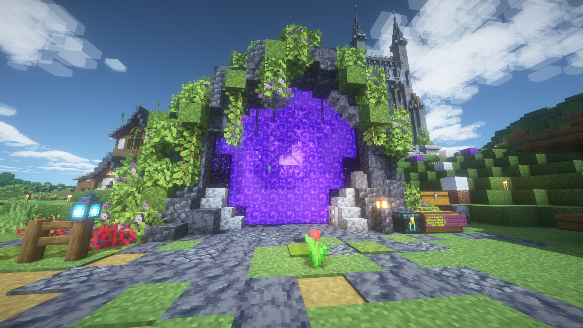 Welcome to our world spawn! The first thing you'll see will be our spawn portal, which is central to the spawn region and takes you directly into our Nether Hub, located at [0, 0].