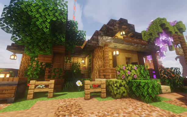 Our server's shopping district is located directly across the river from the spawn portal and village, beginning at [-40,40]. Here you can explore different kinds of shops and builds that are created by the rest of the community on TerraTrove. If you are looking to purchase items or set up your own shop, check out our 'Shop and Economy Guide' and our #shops-trading channel on Discord accordingly.